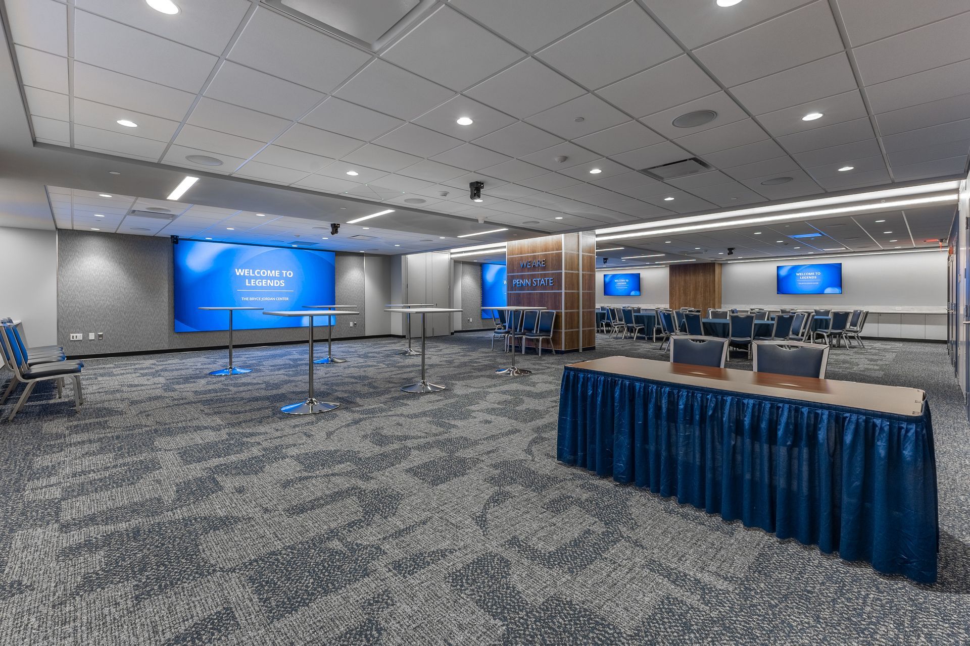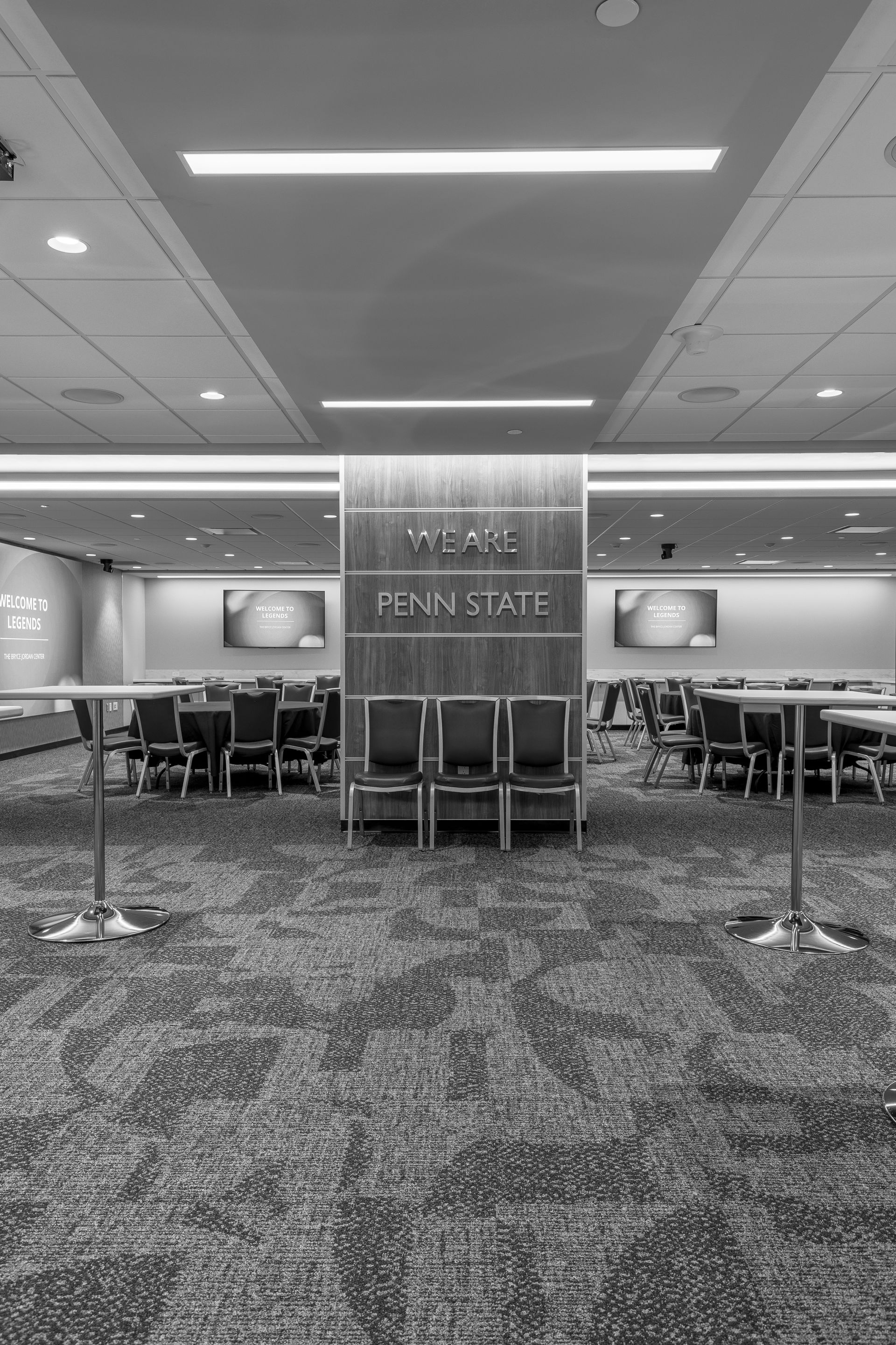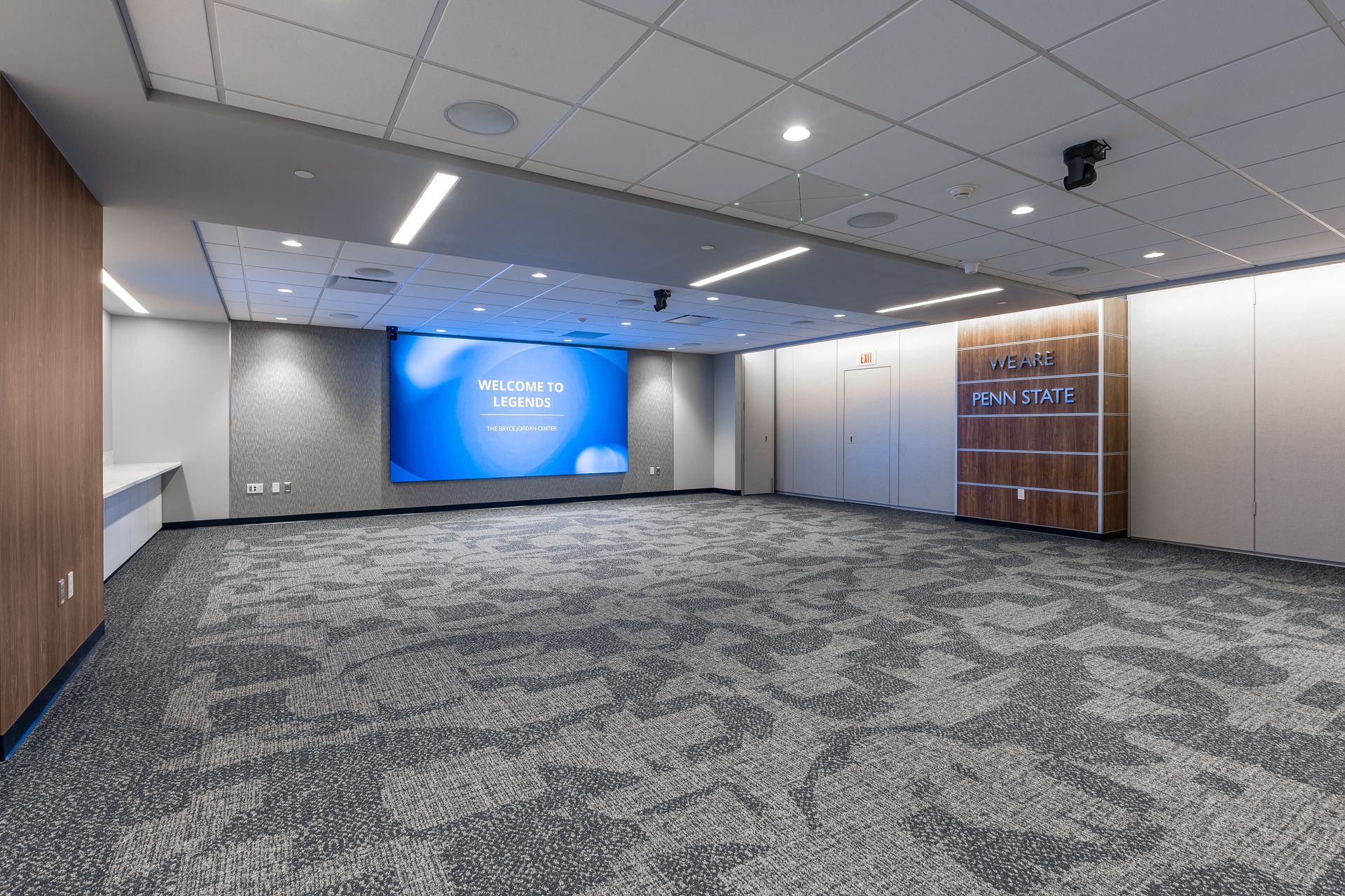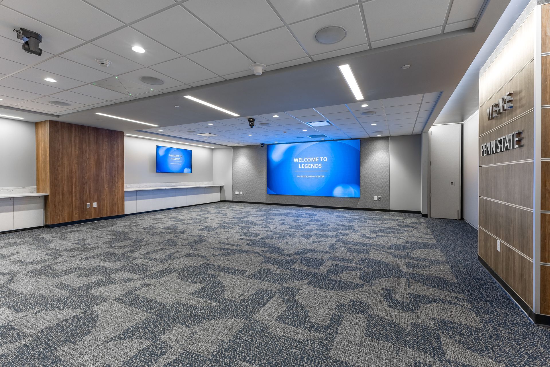 HLA was tasked by the Bryce Jordan Center with bringing a few of its pre-existing multipurpose spaces up to current standards, including their “Legends” rooms, their “Green” room, and their press room. While other areas of the arena had undergone renovation in recent past to provide the amenities expected of an entertainment venue, these well-utilized auxiliary spaces were falling behind in their ability to keep up with the demands of their end users. The project involved a complete interior design overhaul to improve brand aesthetics and modernize technology, leaning into features that align with the grand entertainment experience that the Bryce Jordan Center is known for. The Legends rooms were transformed into hybrid learning and conferencing spaces with an ability to host catered events, and the Green and Press rooms were updated with a particular focus on high-end branding, lighting, Audio/Visual technology, and formal dining amenities. These spaces are now appropriately equipped to host any number of the Bryce Jordan Center’s multipurpose events for years to come.