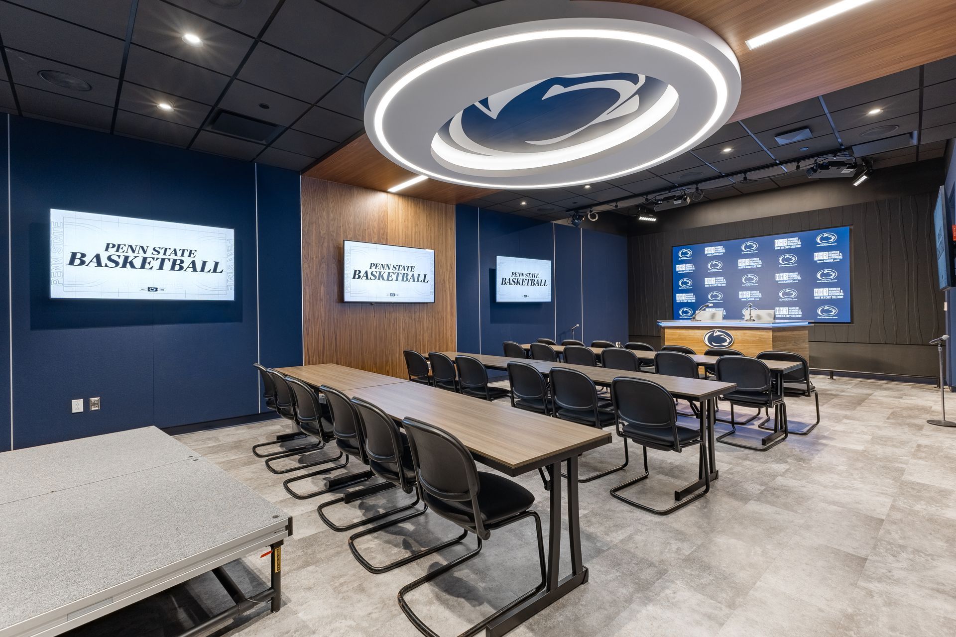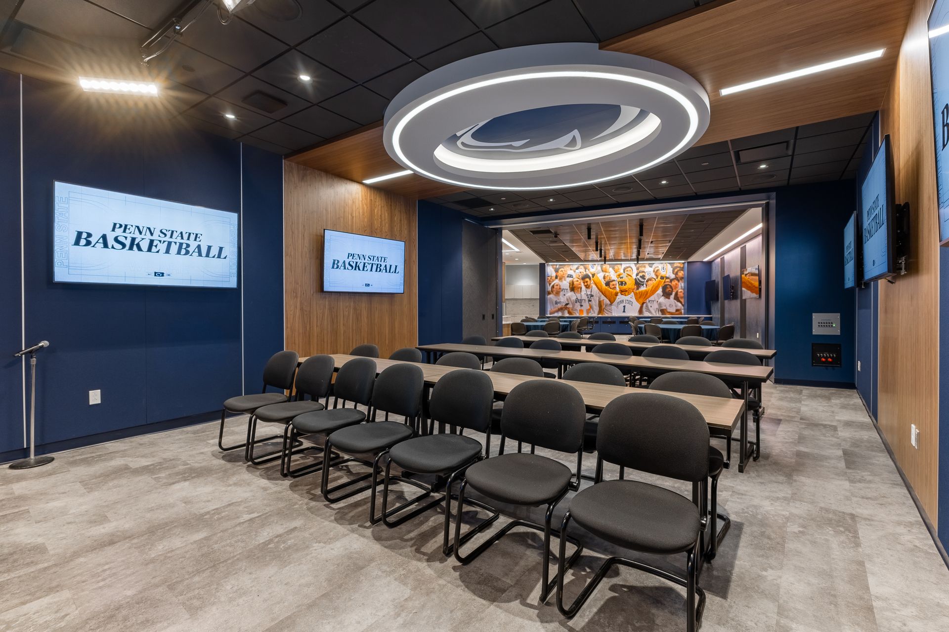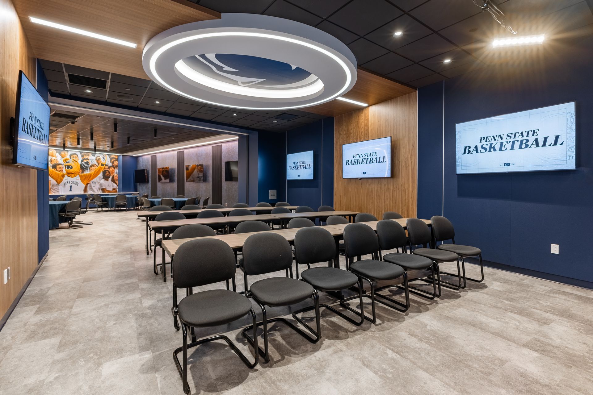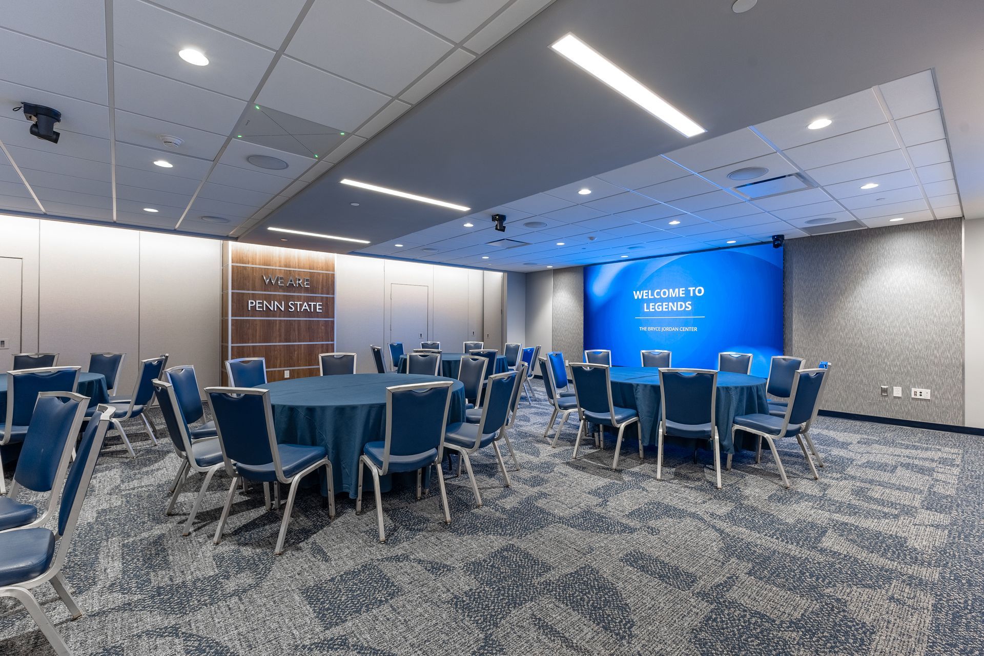 HLA was tasked by the Bryce Jordan Center with bringing a few of its pre-existing multipurpose spaces up to current standards, including their “Legends” rooms, their “Green” room, and their press room. While other areas of the arena had undergone renovation in recent past to provide the amenities expected of an entertainment venue, these well-utilized auxiliary spaces were falling behind in their ability to keep up with the demands of their end users. The project involved a complete interior design overhaul to improve brand aesthetics and modernize technology, leaning into features that align with the grand entertainment experience that the Bryce Jordan Center is known for. The Legends rooms were transformed into hybrid learning and conferencing spaces with an ability to host catered events, and the Green and Press rooms were updated with a particular focus on high-end branding, lighting, Audio/Visual technology, and formal dining amenities. These spaces are now appropriately equipped to host any number of the Bryce Jordan Center’s multipurpose events for years to come.
