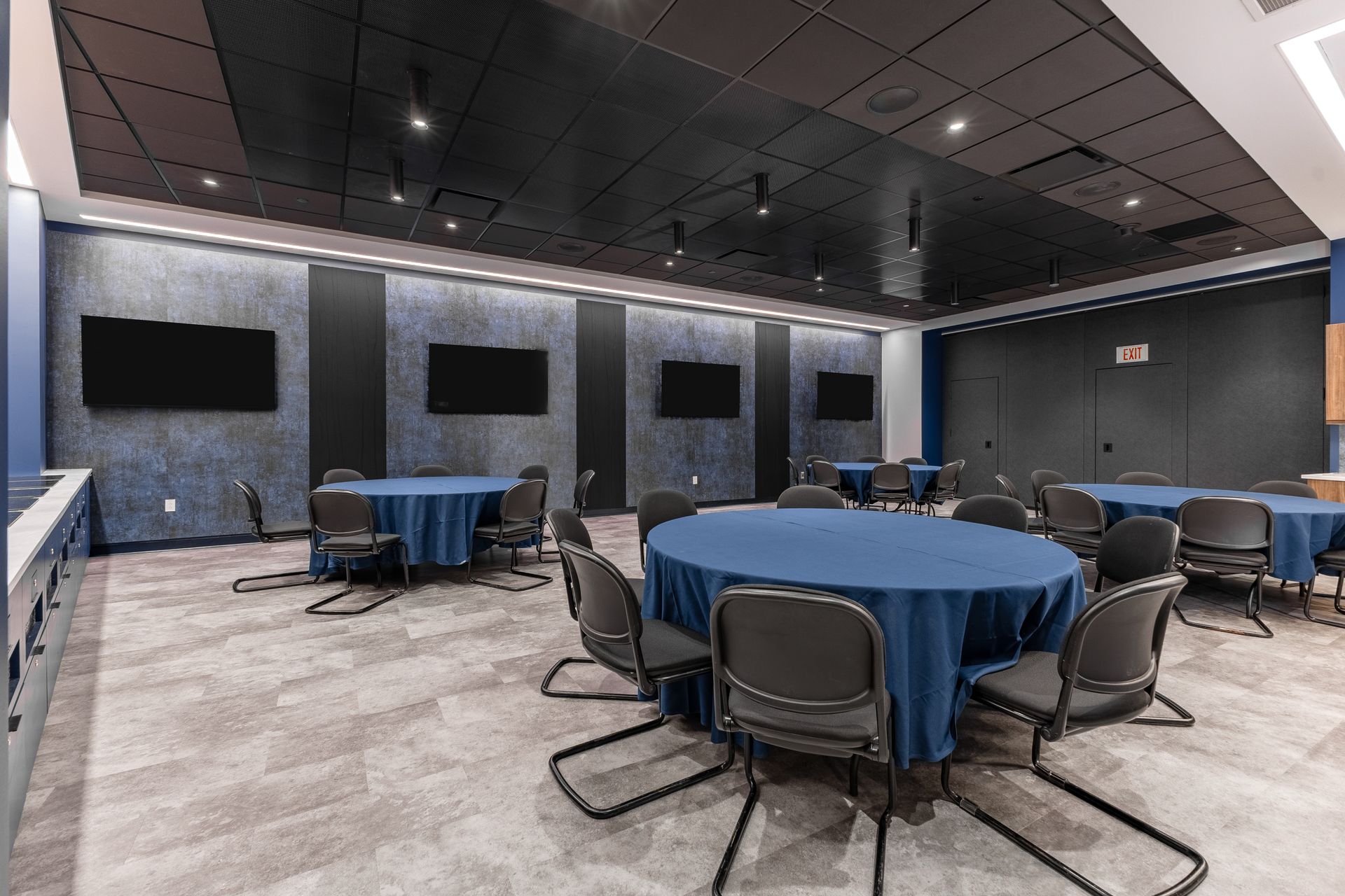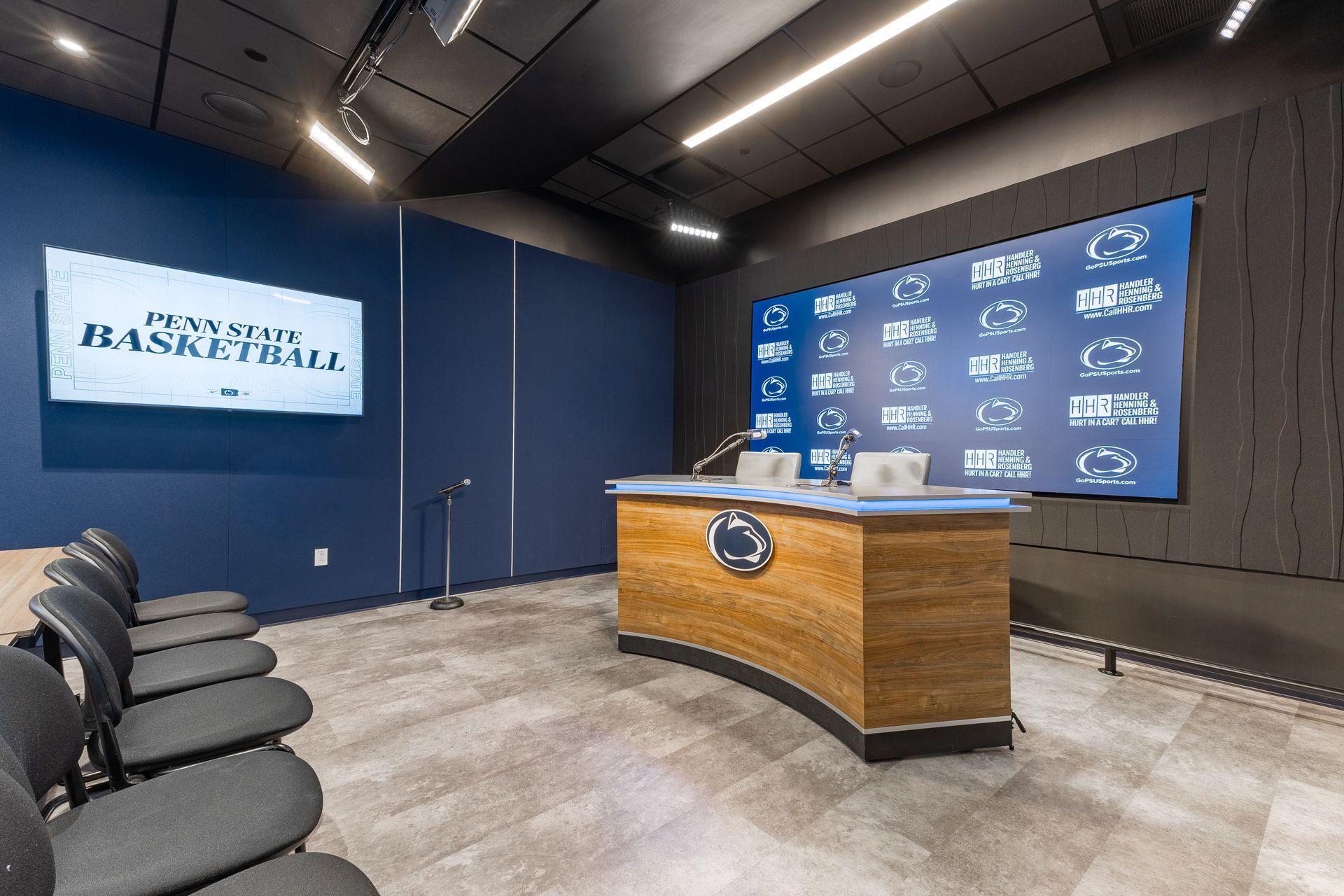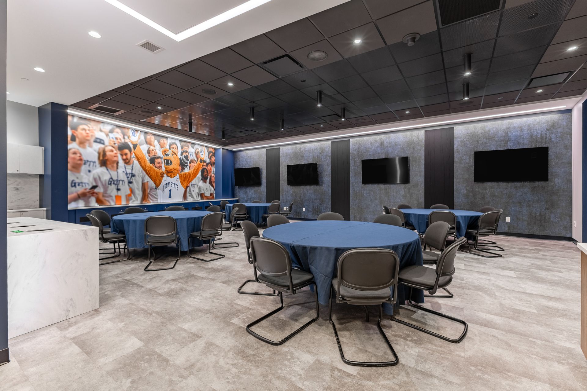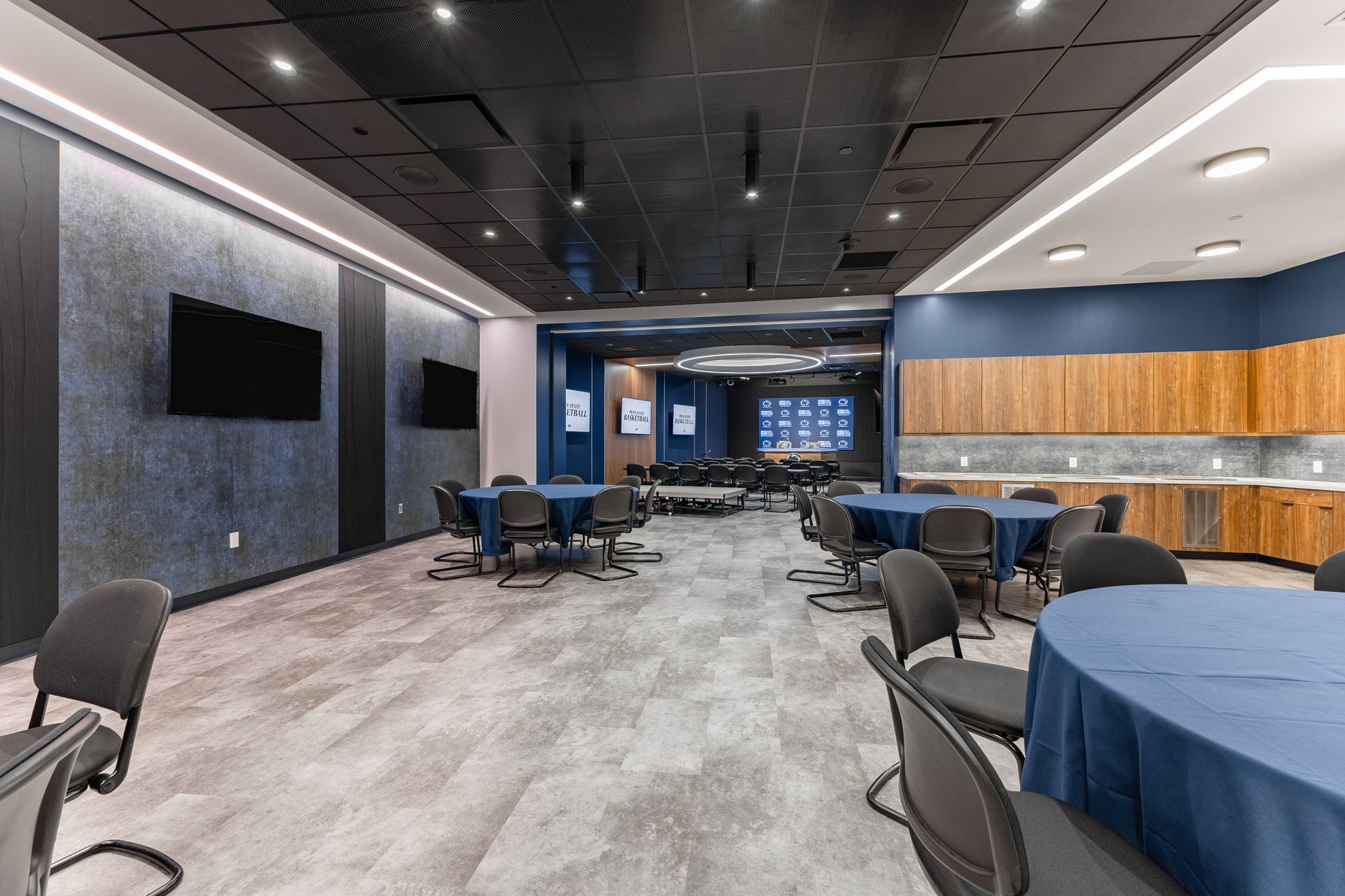 HLA was tasked by the Bryce Jordan Center with bringing a few of its pre-existing multipurpose spaces up to current standards, including their “Legends” rooms, their “Green” room, and their press room. While other areas of the arena had undergone renovation in recent past to provide the amenities expected of an entertainment venue, these well-utilized auxiliary spaces were falling behind in their ability to keep up with the demands of their end users. The project involved a complete interior design overhaul to improve brand aesthetics and modernize technology, leaning into features that align with the grand entertainment experience that the Bryce Jordan Center is known for. The Legends rooms were transformed into hybrid learning and conferencing spaces with an ability to host catered events, and the Green and Press rooms were updated with a particular focus on high-end branding, lighting, Audio/Visual technology, and formal dining amenities. These spaces are now appropriately equipped to host any number of the Bryce Jordan Center’s multipurpose events for years to come.