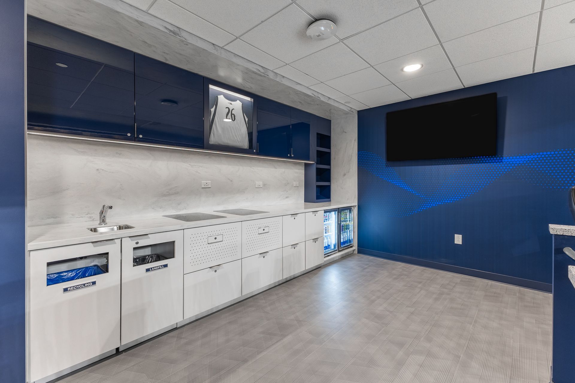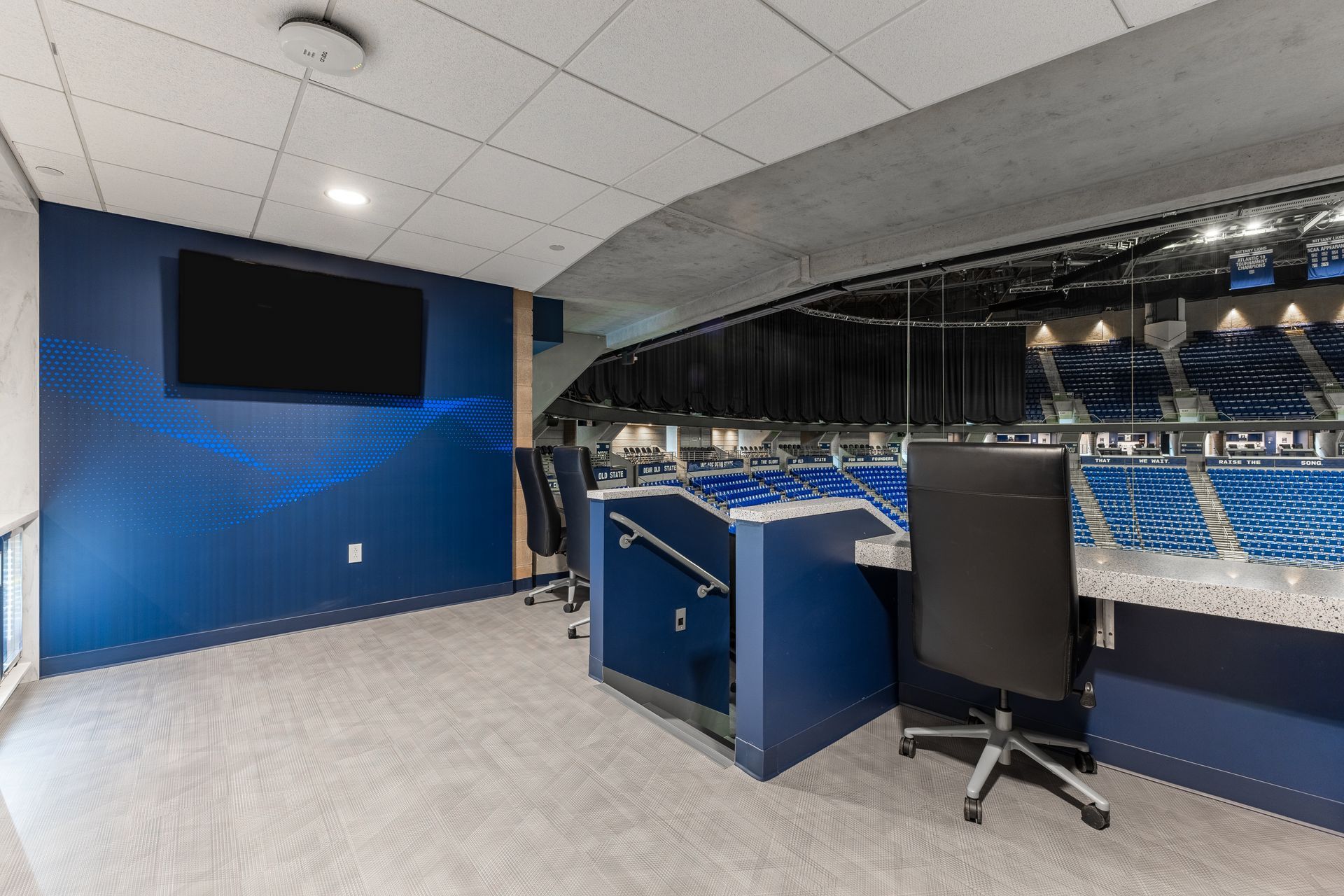 The Bryce Jordan Center leaned on HLA to modernize their outdated private suites to offer enhanced end user experiences with a focus on comfort, aesthetics, and food-service amenities. The design challenge was in the fact that each suite, at its own unique angle and position around the arena, is different in size to its neighboring suite, but that all atypical suites must be outfitted with equal amenities. Fifteen individual rooms were studied at length for custom casework and food service equipment solutions that optimized available space and achieved consistency. Finishes were selected with a certain level of reflectivity in mind to offer the end user a way to continue feeling immersed in their experience while their back is temporarily turned for refreshments. The end result is space that now caters to all the elevated needs of the consumer, with visual appeal that appropriately aligns with the energy of the arena.