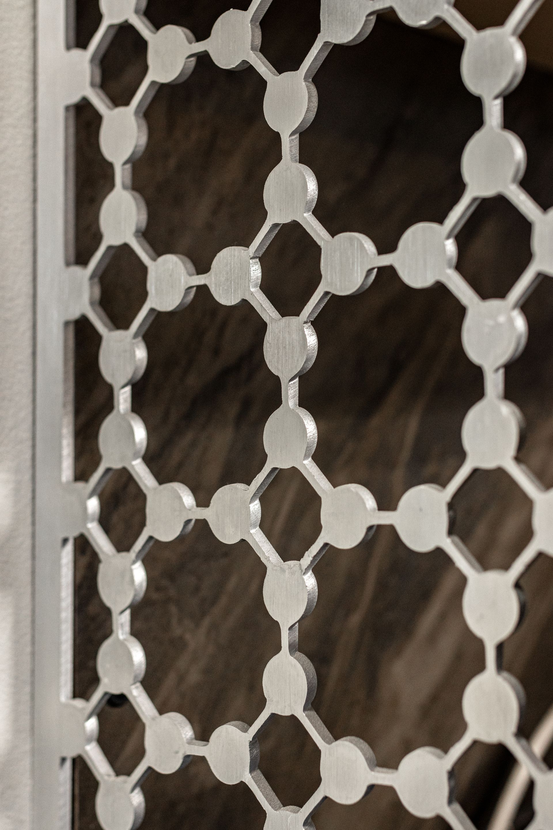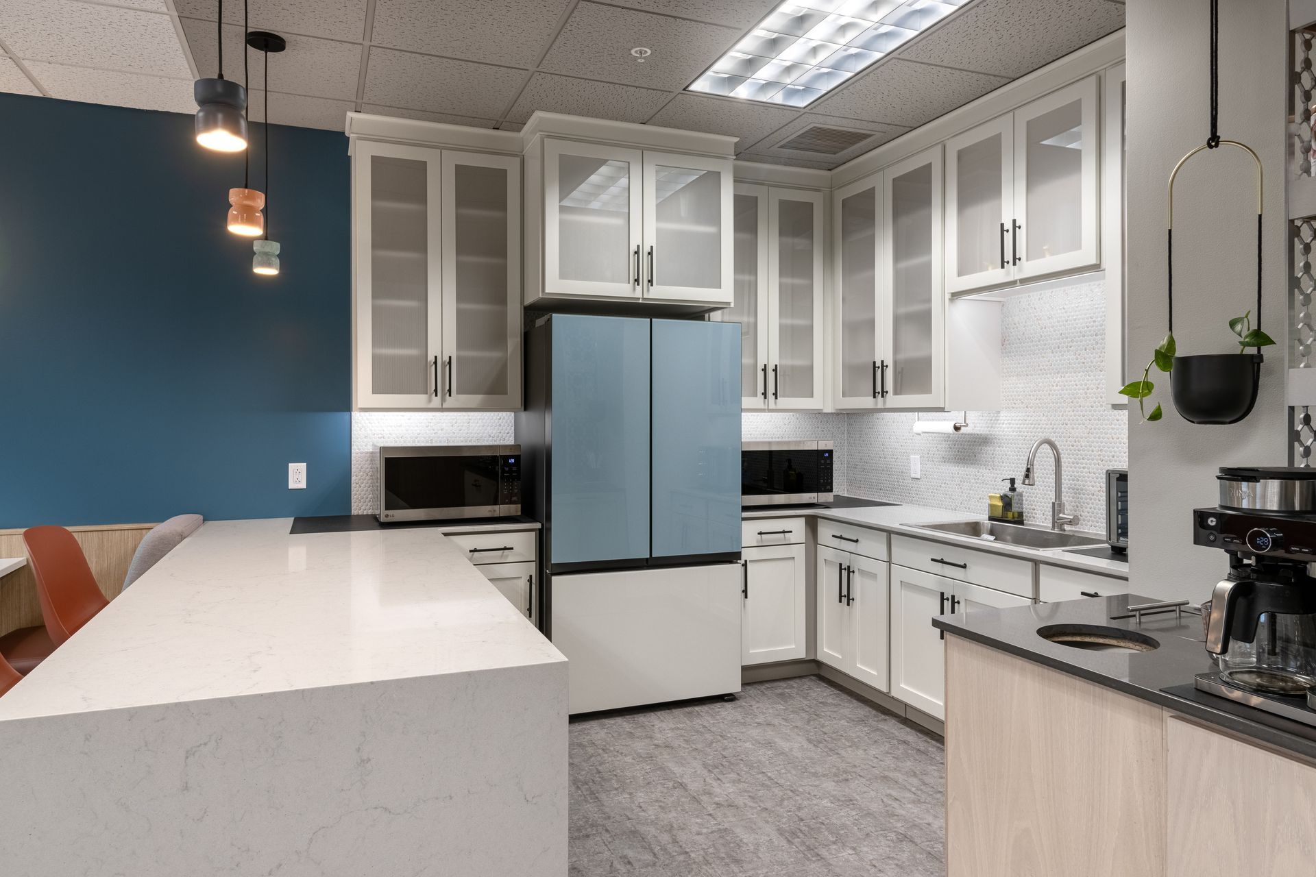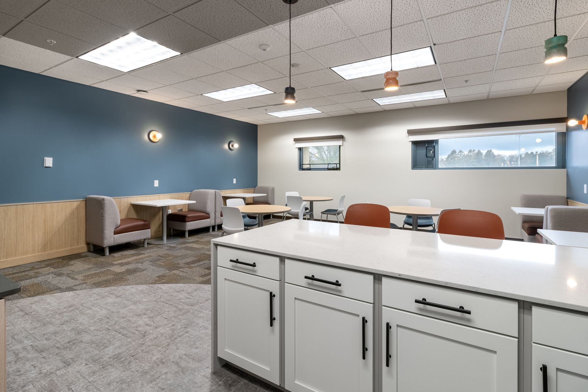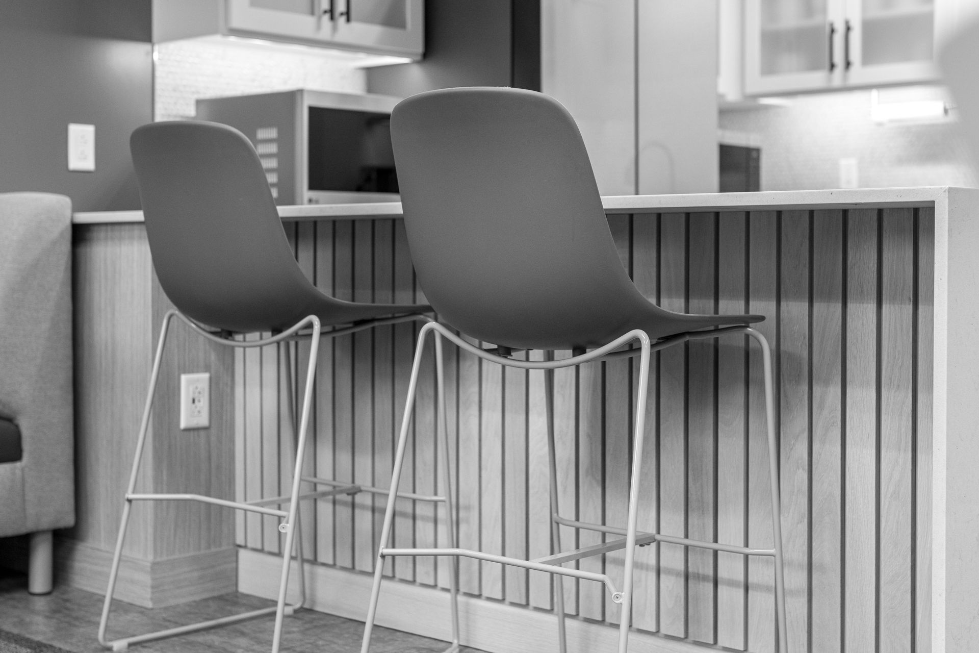 Penn State Earth and Engineering Sciences came to HLA with a desire to modernize their employee lounge on a budget. Last renovated in the early 2000s with an aesthetic that seemed to coincide more with the 80s era, their lounge completely lacked appeal resulting in underutilization. HLA was challenged with instituting a fresh and updated interior finish concept that not only complemented existing features of the space that were unable to be changed, but also incorporated elements symbolic of the department’s work in natural sciences. The finished product features a synchrony of various natural materials with a modern, playful color scheme, and with the added help of soft seating and expanded kitchen storage, the new and improved space is sure to provide staff with all the amenities that a lounge should. Can you spot the hidden carbon allotrope structure pattern?
