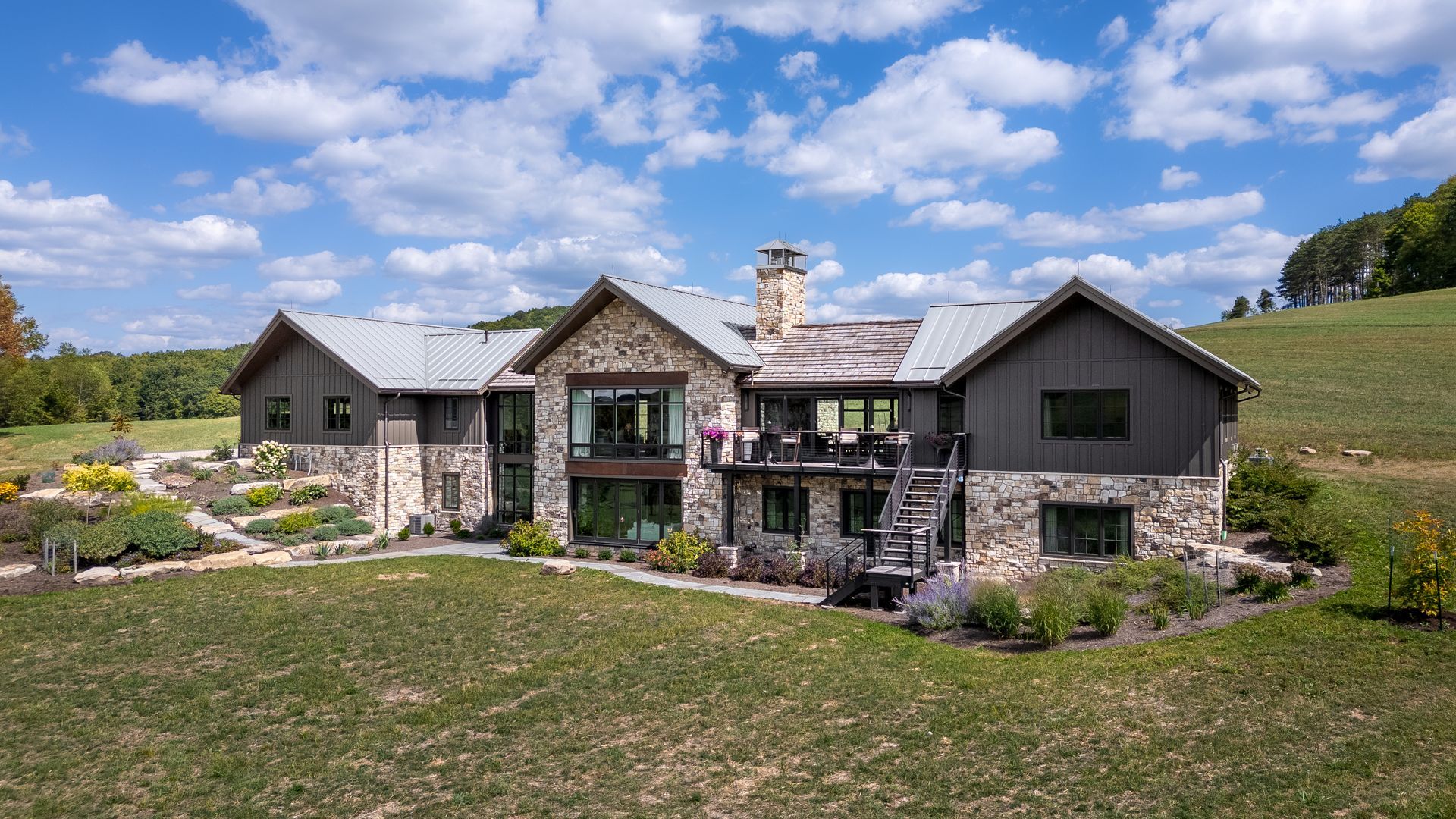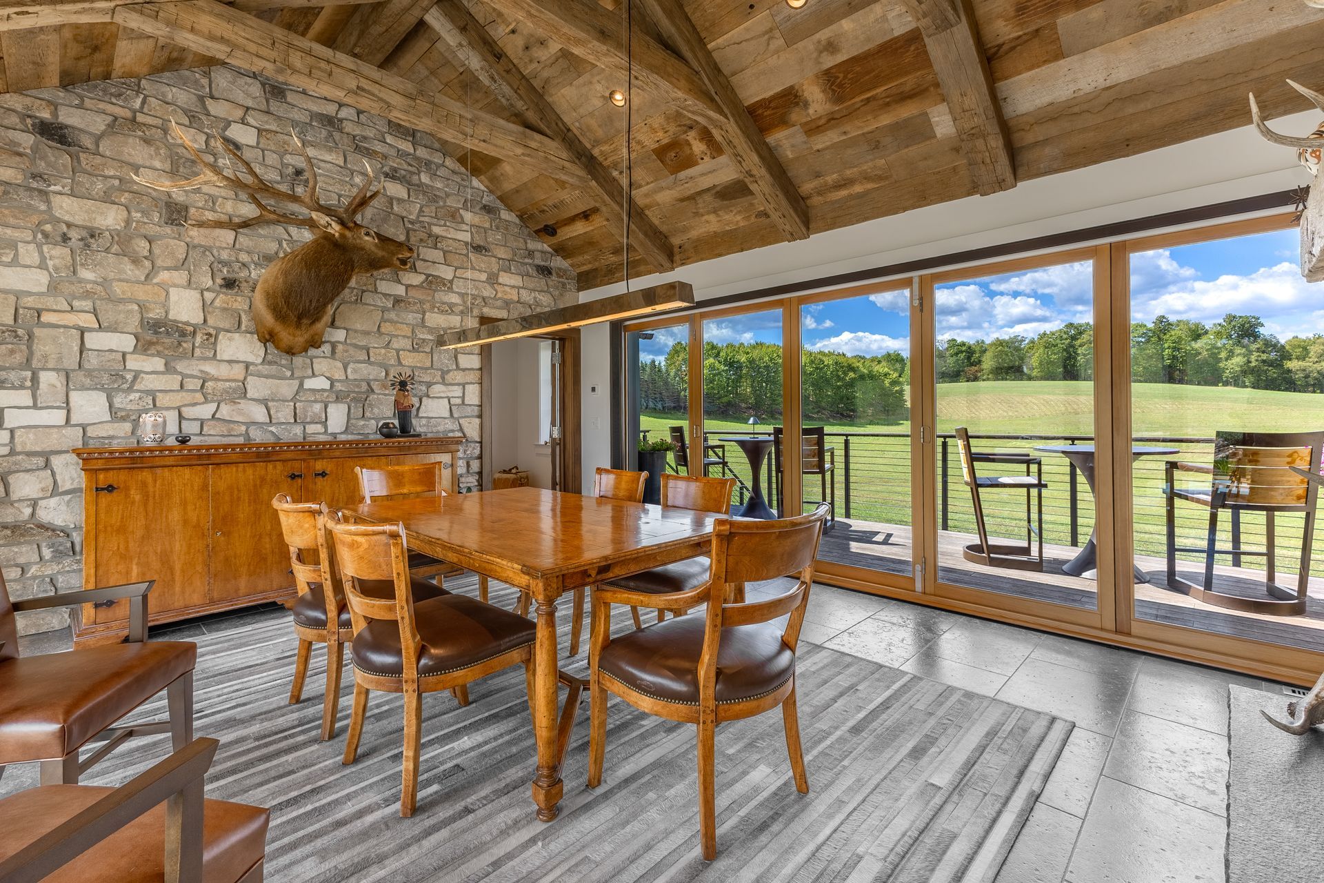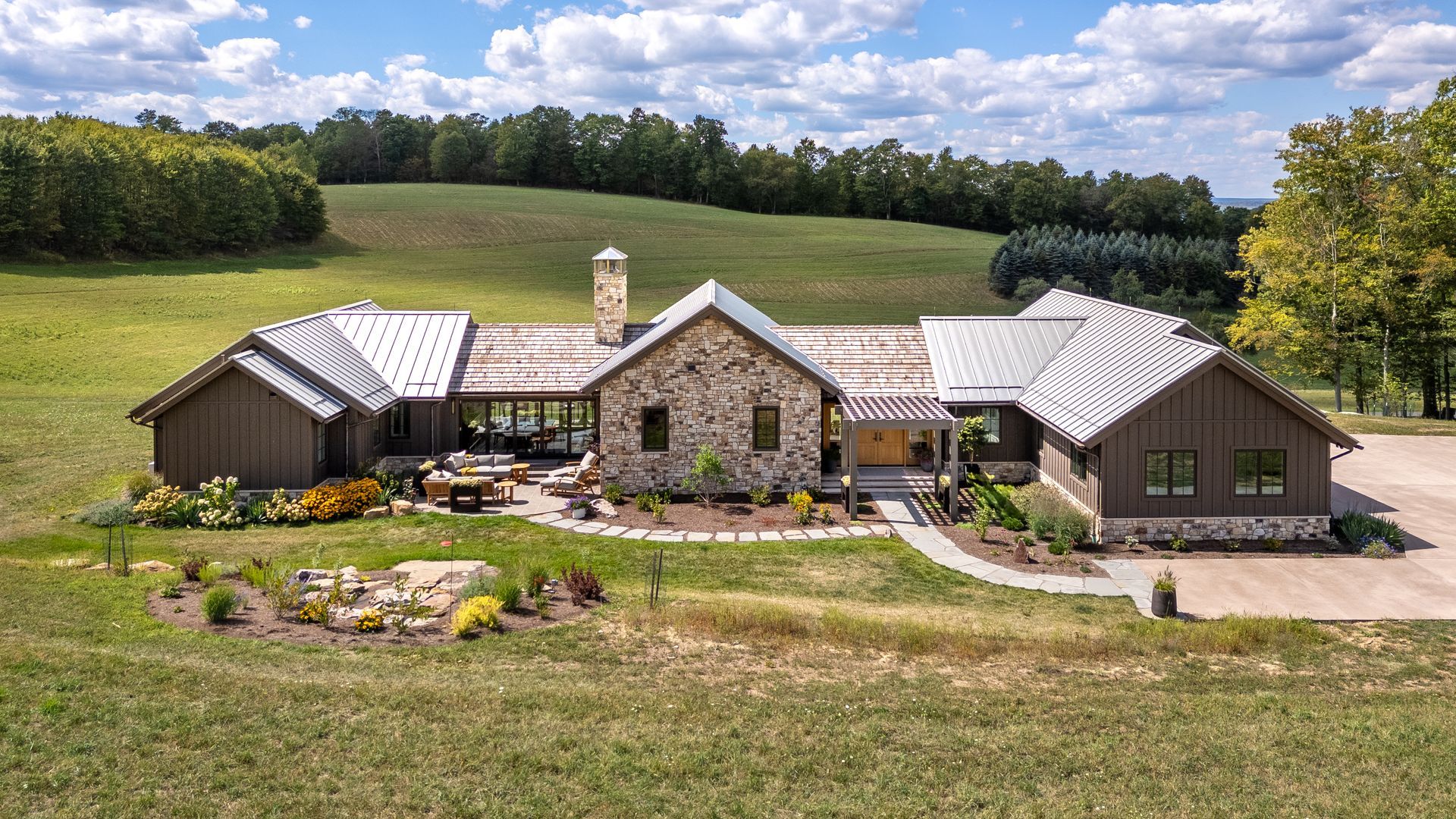 This residential client came to us with a vision for her newly acquired 90+ acres of countryside in the heart of Cameron County, where elk are known to roam. An avid hunter, outdoorswoman, and philanthropist, our client was looking to build a quiet nest for herself in retirement after living out a busy life in the outskirts of Philadelphia. We began with a study of the landscape to ultimately determine the home’s best position for interacting with its natural surroundings. The architecture and layout of the home was then predicated around an open-air dining room that doubles as a breezeway between the main level living and master suite. The home’s final design is a product of visionaries who sought inspiration from nature, artifacts, and the project site’s incredible, panoramic views.