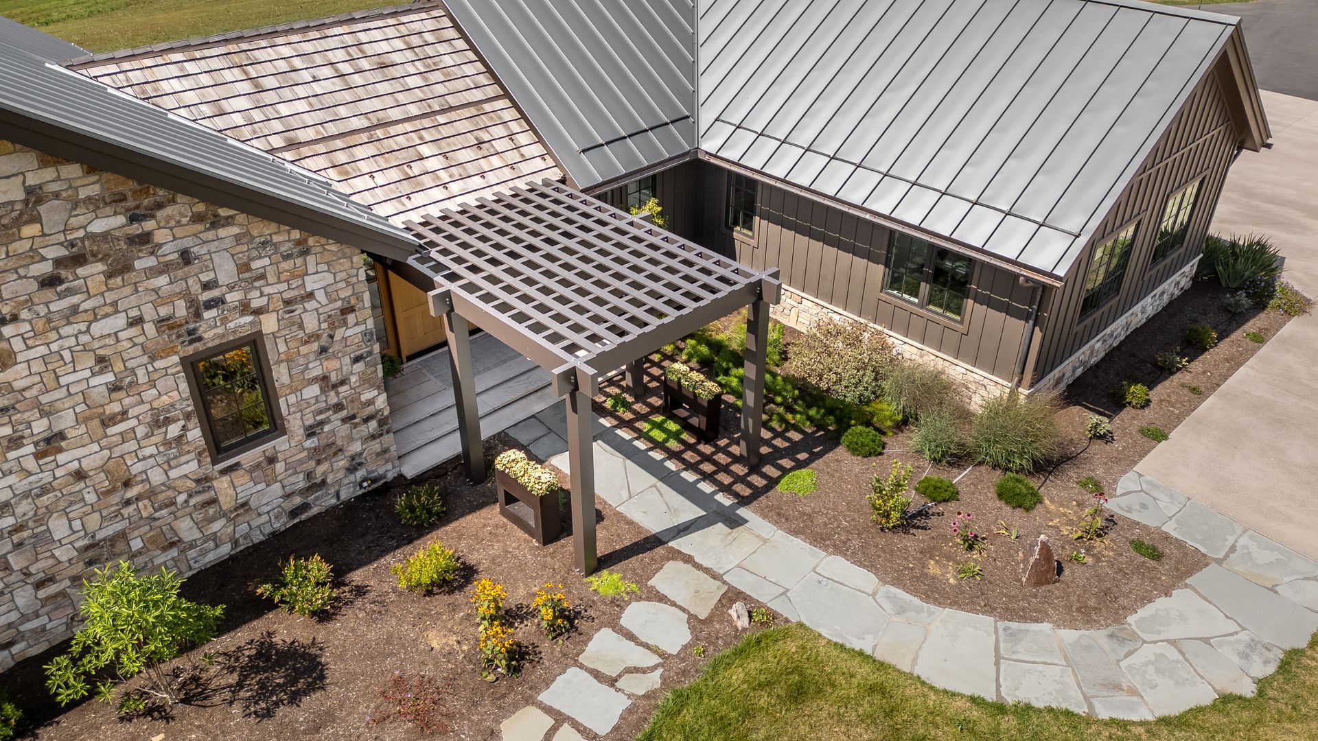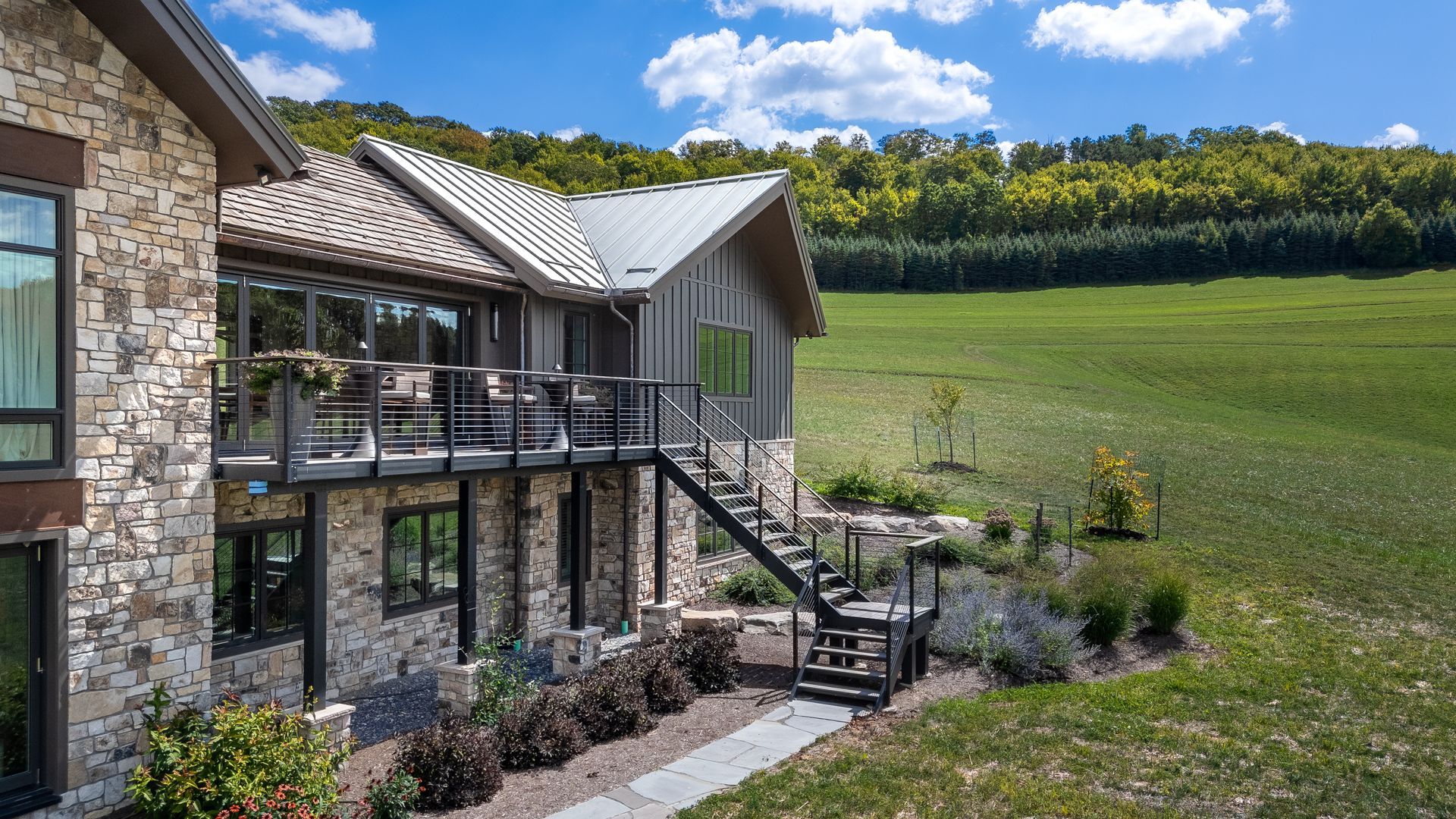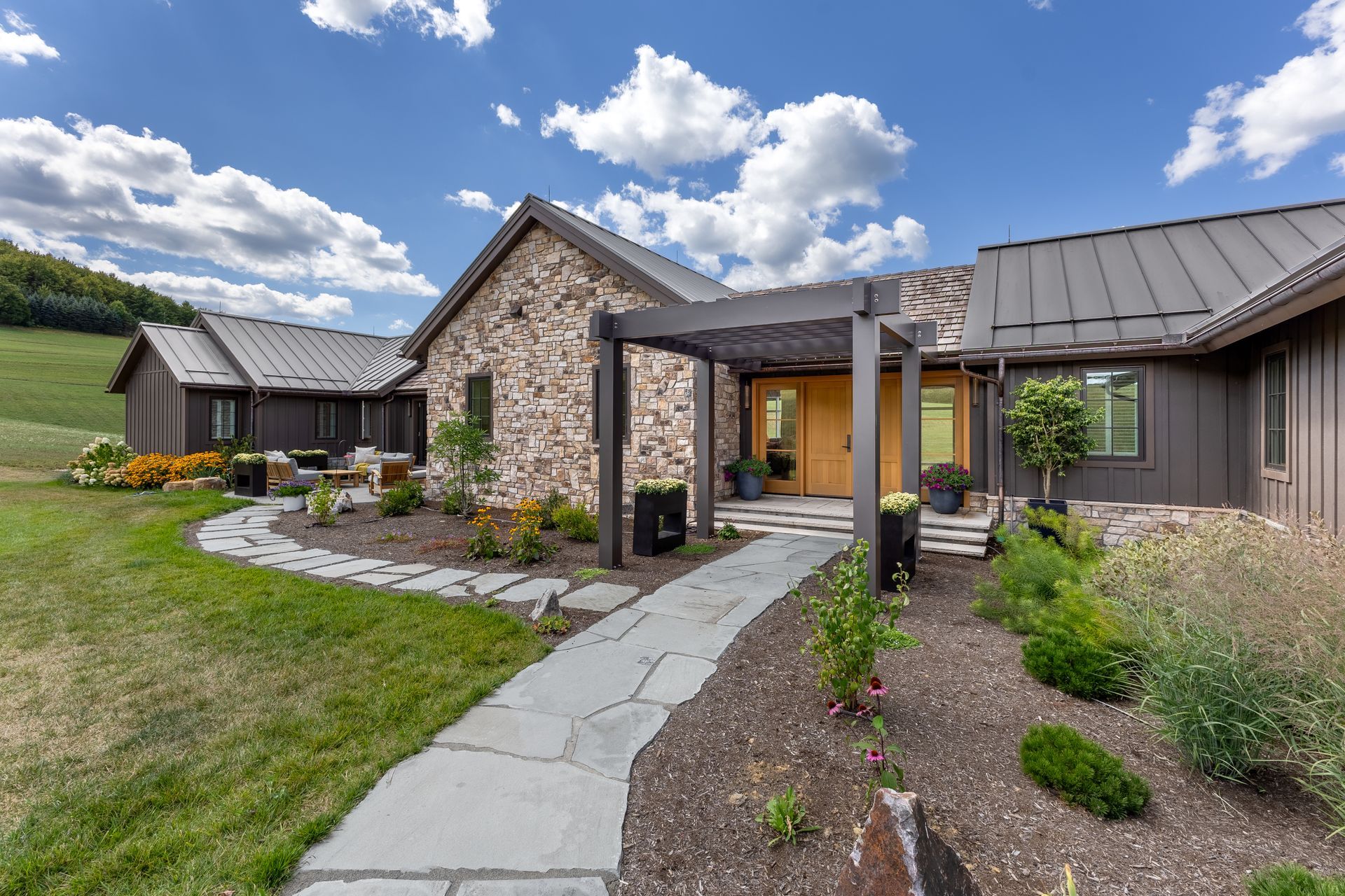This residential client came to us with a vision for her newly acquired 90+ acres of countryside in the heart of Cameron County, where elk are known to roam. An avid hunter, outdoorswoman, and philanthropist, our client was looking to build a quiet nest for herself in retirement after living out a busy life in the outskirts of Philadelphia. We began with a study of the landscape to ultimately determine the home’s best position for interacting with its natural surroundings. The architecture and layout of the home was then predicated around an open-air dining room that doubles as a breezeway between the main level living and master suite. The home’s final design is a product of visionaries who sought inspiration from nature, artifacts, and the project site’s incredible, panoramic views.