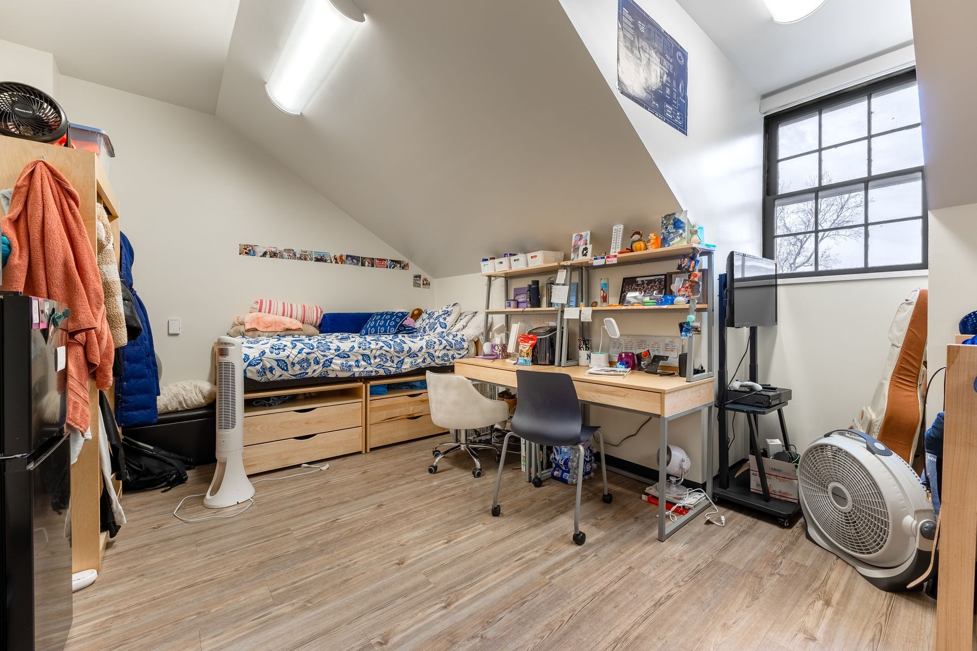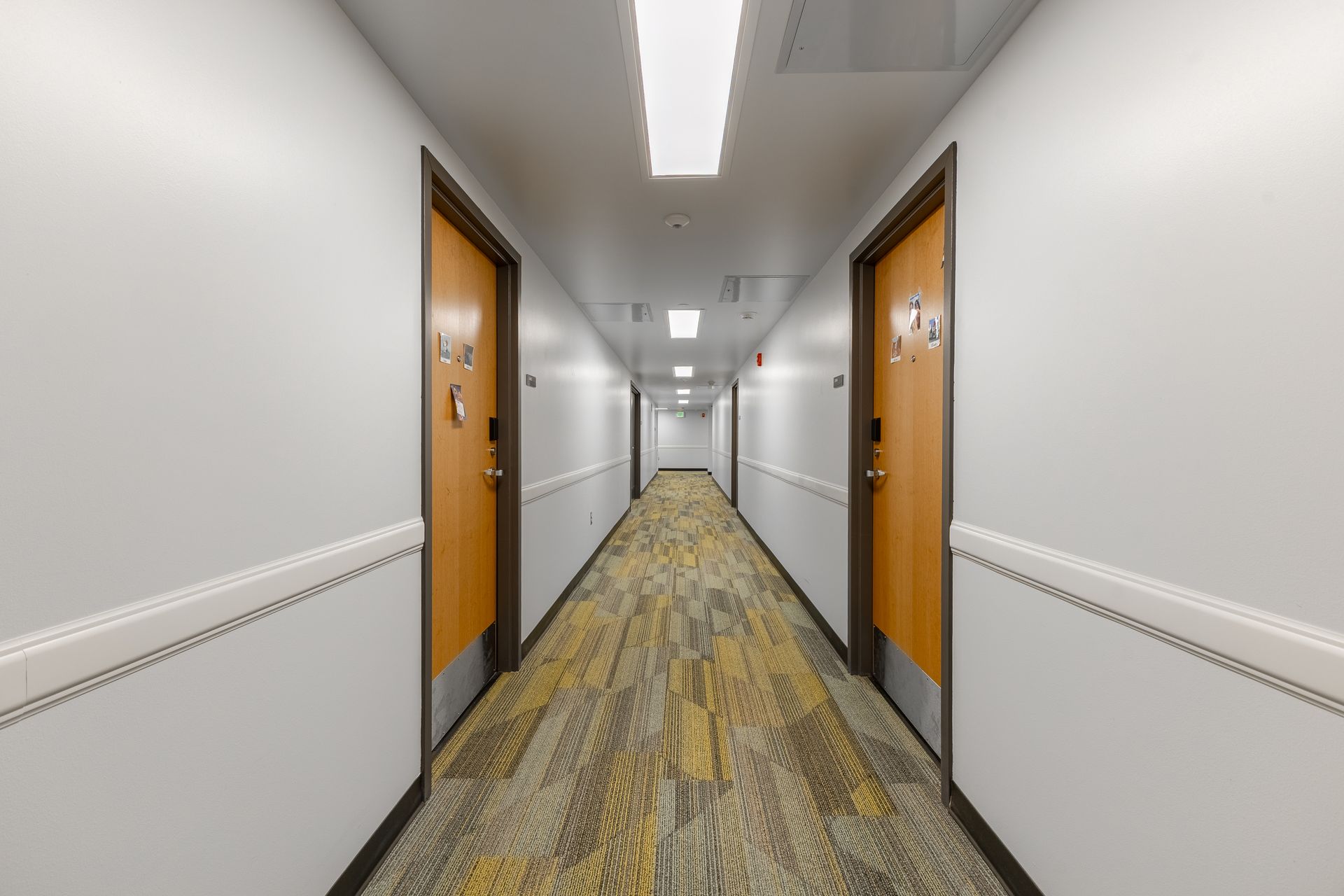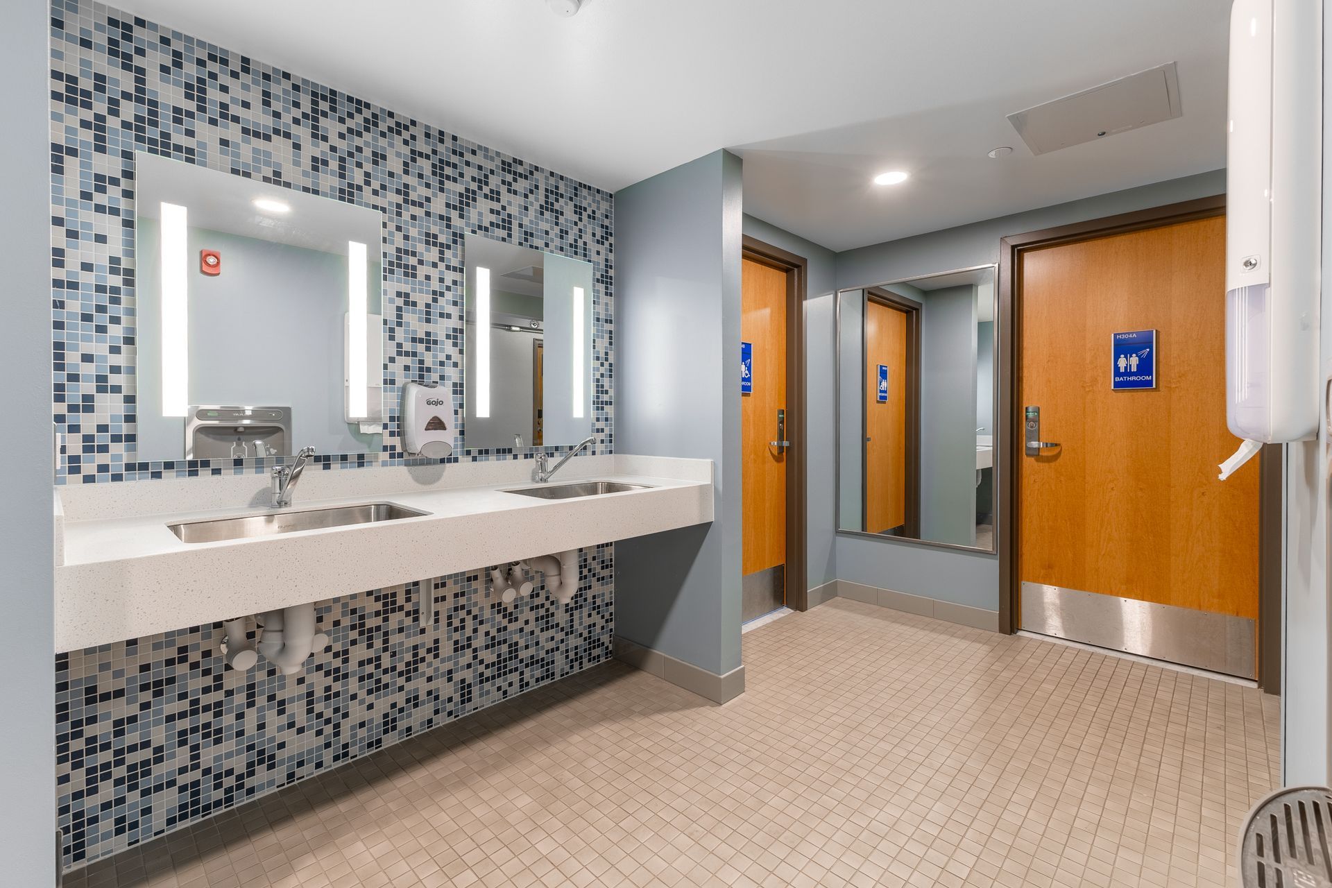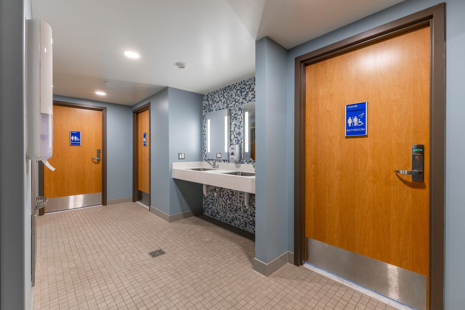 Located in the West Halls Housing Complex of Penn State University Park’s campus, this project involved the redesign and modernization of the existing gang style bathrooms into single user bathrooms. The overall project consisted of three (3) different bathroom stacks, each completed over the course of three semesters, one stack per semester. In addition to the bathroom renovations, this project also involved creating new bedrooms in the existing attic spaces as well as various building upgrades. Since Hamilton Hall was built in the 1950s, there were various challenges and struggles that HLA and our design team had to work through, as existing condition documentation did not fully depict unforeseen building conditions. We worked very closely with the Construction Management team during construction to work through these challenges and then ensure that we translated these lessons learned to the next stacks to avoid the same challenges.